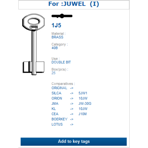 SILCA -> 5JW1 ORION -> 10JW JMA -> JW-30G KL -> 10JW За брави AKARSAN (средна перка)